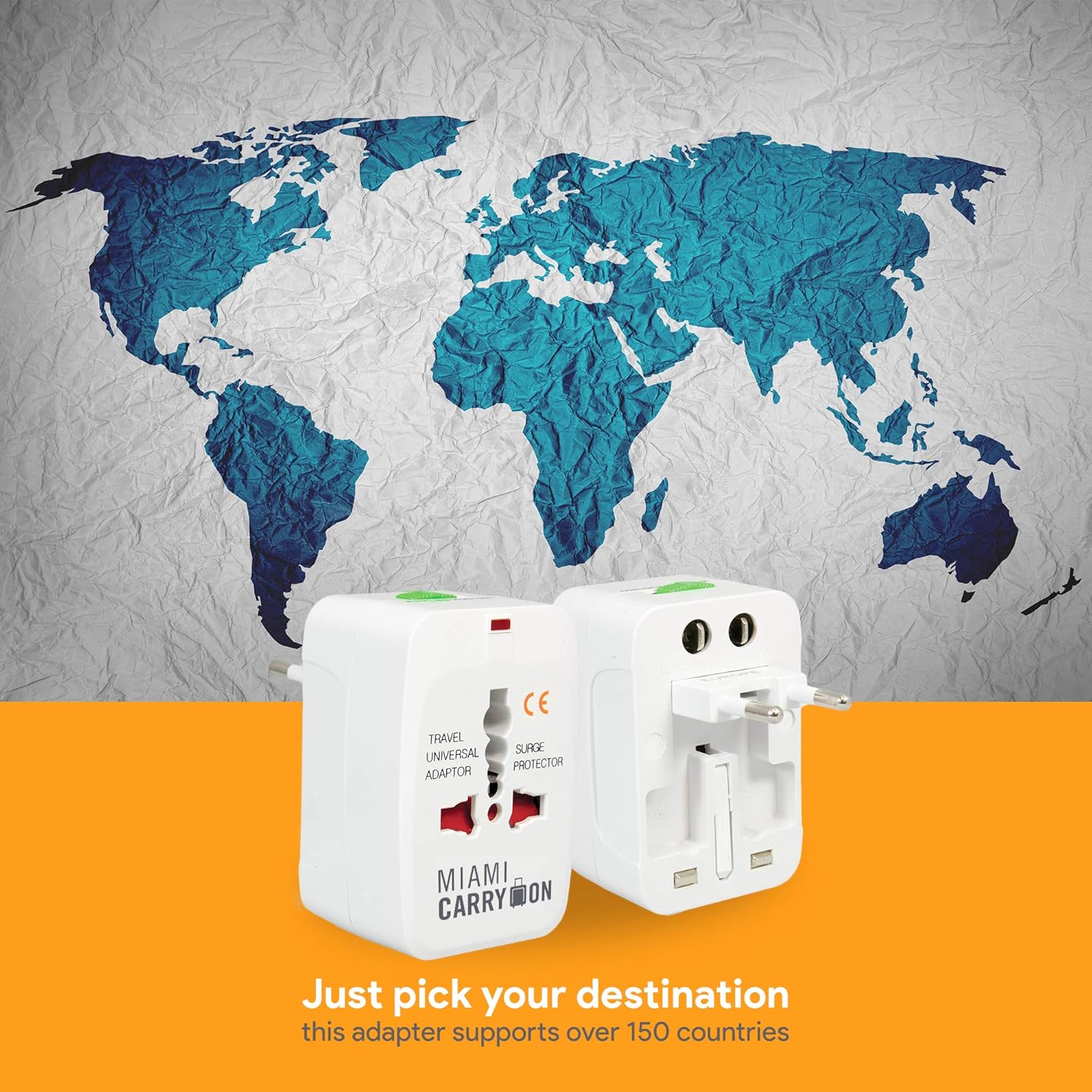 Este adaptador universal es una unidad compacta de una sola pieza con 4 adaptadores internacionales e incluye un protector de seguridad para niños, luz indicadora de encendido y protección contra sobretensiones. Este modelo es compatible con los enchufes de Europa, Reino Unido, EE.UU., China, Japón, Australia, España y casi todos los países del mundo.